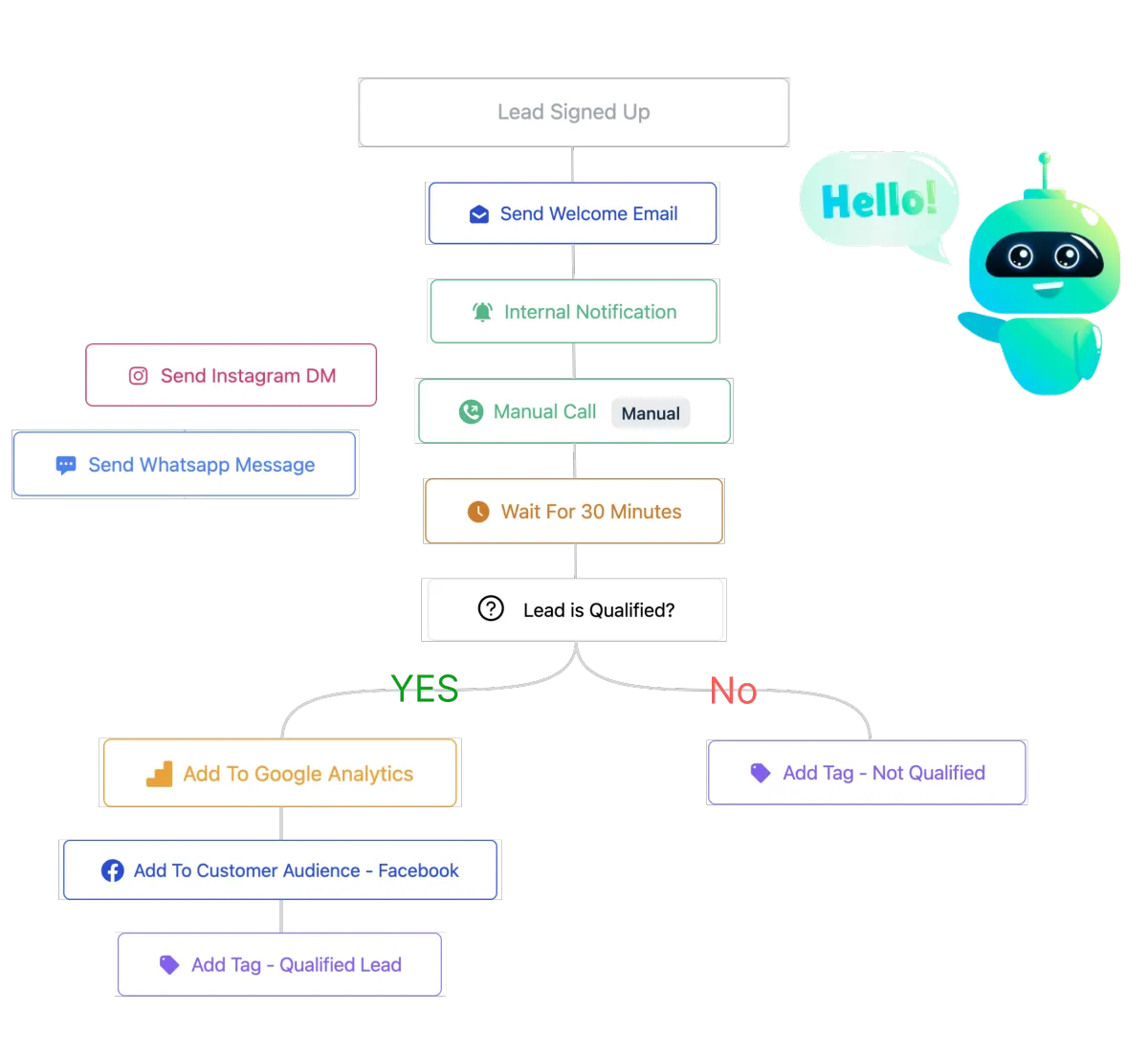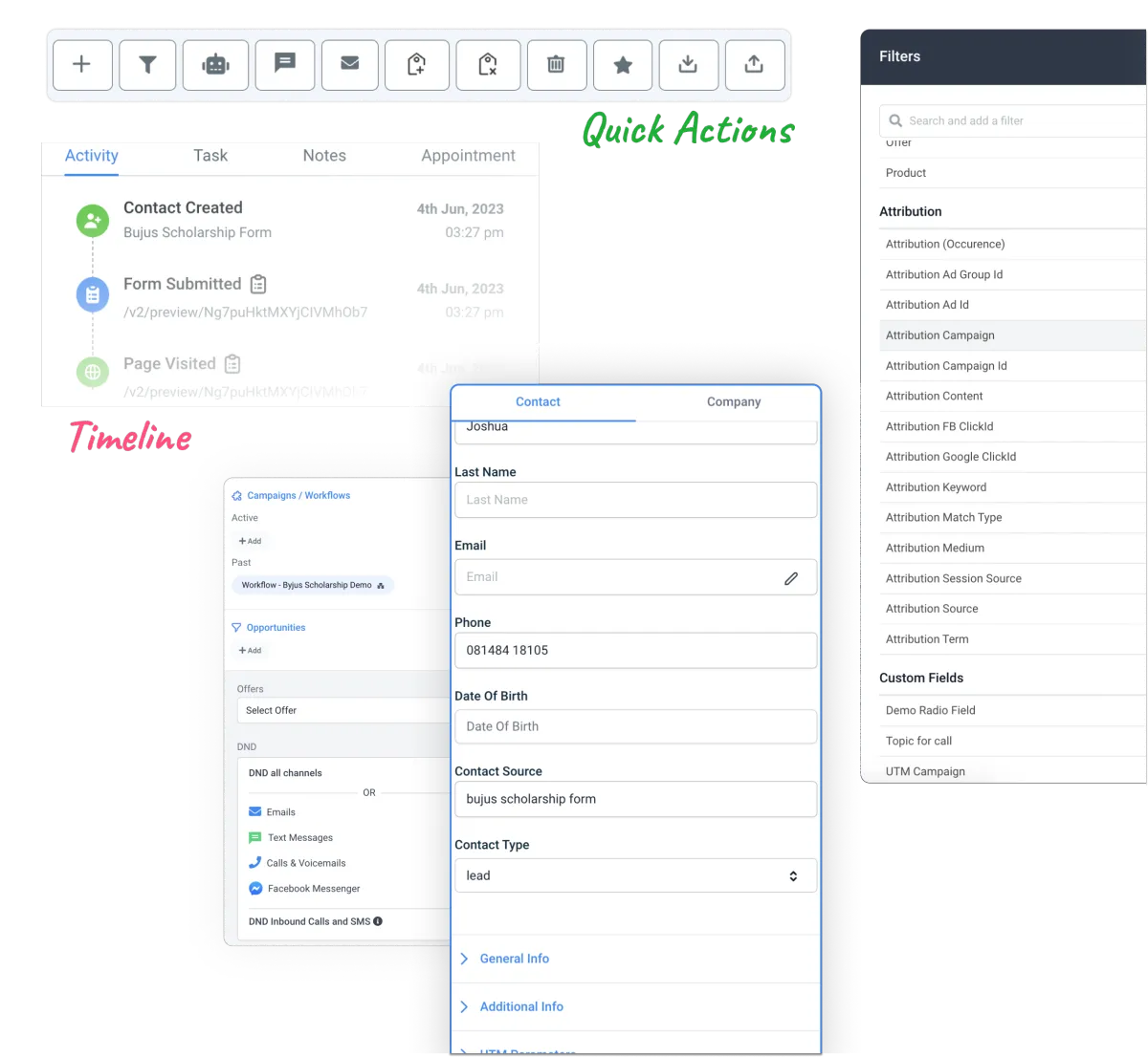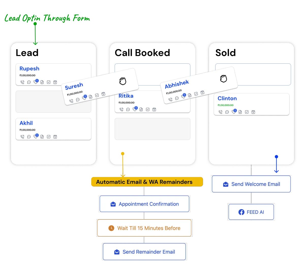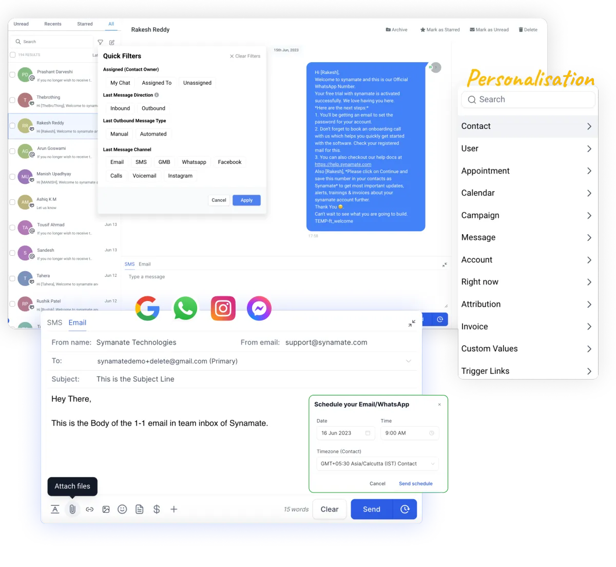 Centralised communication with your prospects via Email, SMS, GMB, WhatsApp, Facebook, Instagram.