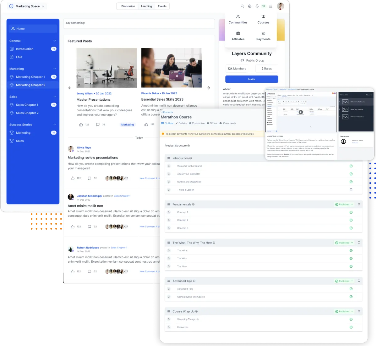 Give access to your content, test your students with assessments in an automated way and build your tribe!